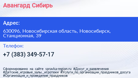 Авангард Сибирь по адресу 630096, Новосибирская область, Новосибирск, Станционная, 39 в дальнейшем Организация, размещена в следующих категориях: