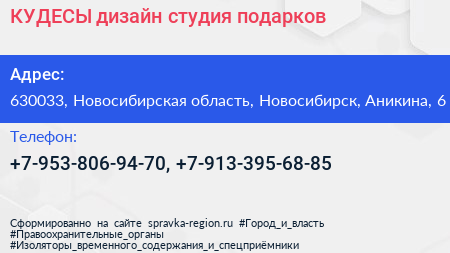 КУДЕСЫ, дизайн-студия подарков по адресу 630033, Новосибирская область, Новосибирск, Аникина, 6 в дальнейшем Организация, размещена в следующих категориях: