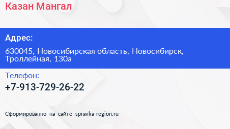Казан Мангал по адресу 630045, Новосибирская область, Новосибирск, Троллейная, 130а в дальнейшем Организация, размещена в следующих категориях: