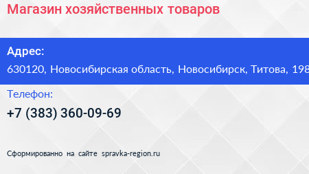 Магазин хозяйственных товаров по адресу 630120, Новосибирская область, Новосибирск, Титова, 198 в дальнейшем Организация, размещена в следующих категориях:
