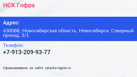 НСК-Гофра по адресу 630088, Новосибирская область, Новосибирск, Северный проезд, 3/1 в дальнейшем Организация, размещена в следующих категориях: