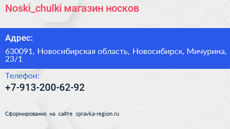 Noski_chulki, магазин носков по адресу 630091, Новосибирская область, Новосибирск, Мичурина, 23/1 в дальнейшем Организация, размещена в следующих категориях: