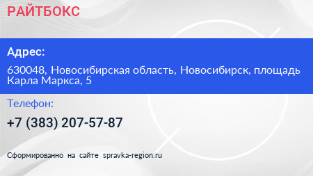 РАЙТБОКС по адресу 630048, Новосибирская область, Новосибирск, площадь Карла Маркса, 5 в дальнейшем Организация, размещена в следующих категориях: