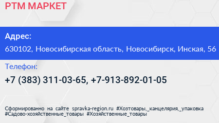 РТМ-МАРКЕТ по адресу 630102, Новосибирская область, Новосибирск, Инская, 56 в дальнейшем Организация, размещена в следующих категориях:
