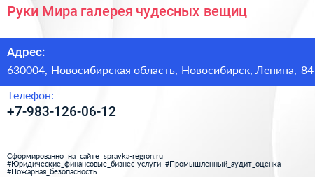 Руки Мира, галерея чудесных вещиц по адресу 630004, Новосибирская область, Новосибирск, Ленина, 84 в дальнейшем Организация, размещена в следующих категориях: