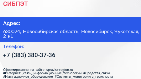 СИБПЭТ по адресу 630024, Новосибирская область, Новосибирск, Чукотская, 2 к1 в дальнейшем Организация, размещена в следующих категориях: