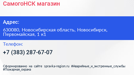 СамогоНСК, магазин по адресу 630080, Новосибирская область, Новосибирск, Первомайская, 1 к1 в дальнейшем Организация, размещена в следующих категориях: