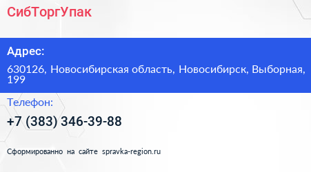 СибТоргУпак по адресу 630126, Новосибирская область, Новосибирск, Выборная, 199 в дальнейшем Организация, размещена в следующих категориях: