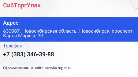 СибТоргУпак по адресу 630087, Новосибирская область, Новосибирск, проспект Карла Маркса, 30 в дальнейшем Организация, размещена в следующих категориях: