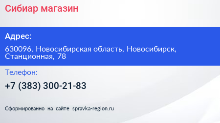 Сибиар, магазин по адресу 630096, Новосибирская область, Новосибирск, Станционная, 78 в дальнейшем Организация, размещена в следующих категориях:
