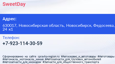 SweetDay по адресу 630017, Новосибирская область, Новосибирск, Федосеева, 24 к1 в дальнейшем Организация, размещена в следующих категориях: