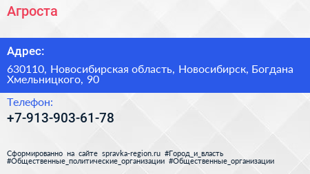 Агроста по адресу 630110, Новосибирская область, Новосибирск, Богдана Хмельницкого, 90 в дальнейшем Организация, размещена в следующих категориях: