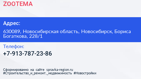 ZOOTEMA по адресу 630089, Новосибирская область, Новосибирск, Бориса Богаткова, 228/1 в дальнейшем Организация, размещена в следующих категориях: