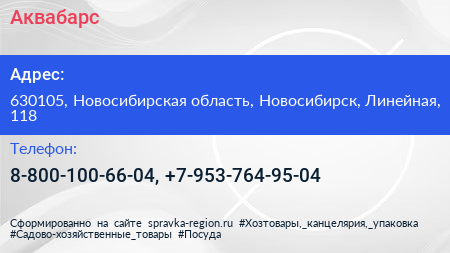 Аквабарс по адресу 630105, Новосибирская область, Новосибирск, Линейная, 118 в дальнейшем Организация, размещена в следующих категориях:
