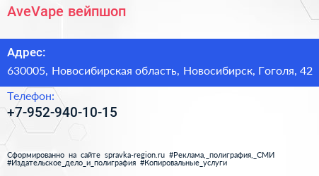 AveVape, вейпшоп по адресу 630005, Новосибирская область, Новосибирск, Гоголя, 42 в дальнейшем Организация, размещена в следующих категориях: