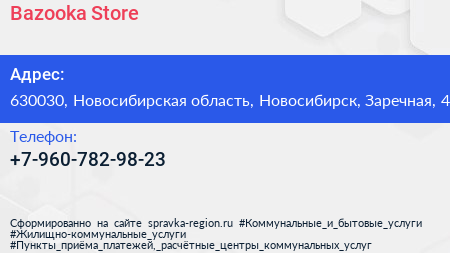 Bazooka Store по адресу 630030, Новосибирская область, Новосибирск, Заречная, 4 в дальнейшем Организация, размещена в следующих категориях: