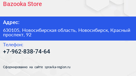 Bazooka Store по адресу 630105, Новосибирская область, Новосибирск, Красный проспект, 92 в дальнейшем Организация, размещена в следующих категориях: