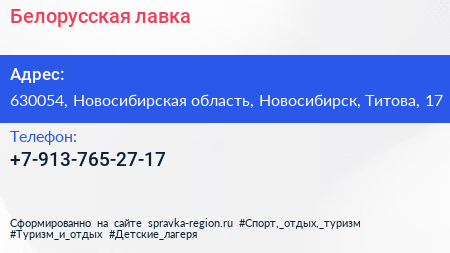Белорусская лавка по адресу 630054, Новосибирская область, Новосибирск, Титова, 17 в дальнейшем Организация, размещена в следующих категориях: