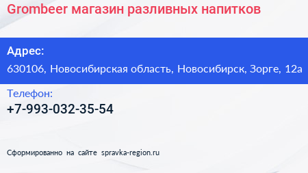 Grombeer, магазин разливных напитков по адресу 630106, Новосибирская область, Новосибирск, Зорге, 12а в дальнейшем Организация, размещена в следующих категориях: