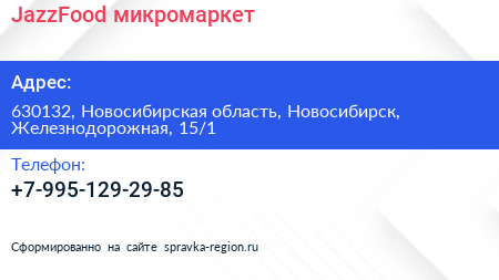 JazzFood, микромаркет по адресу 630132, Новосибирская область, Новосибирск, Железнодорожная, 15/1 в дальнейшем Организация, размещена в следующих категориях: