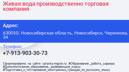 Живая вода, производственно-торговая компания по адресу 630010, Новосибирская область, Новосибирск, Черенкова, 34 в дальнейшем Организация, размещена в следующих категориях: