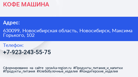 КОФЕ & МАШИНА по адресу 630099, Новосибирская область, Новосибирск, Максима Горького, 102 в дальнейшем Организация, размещена в следующих категориях: