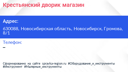 Крестьянский дворик, магазин по адресу 630088, Новосибирская область, Новосибирск, Громова, 8/1 в дальнейшем Организация, размещена в следующих категориях: