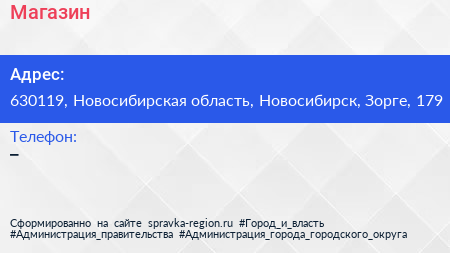 Магазин по адресу 630119, Новосибирская область, Новосибирск, Зорге, 179 в дальнейшем Организация, размещена в следующих категориях: