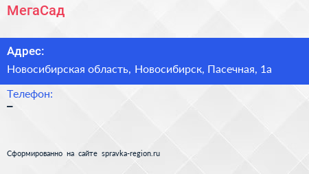 МегаСад по адресу Новосибирская область, Новосибирск, Пасечная, 1а в дальнейшем Организация, размещена в следующих категориях: