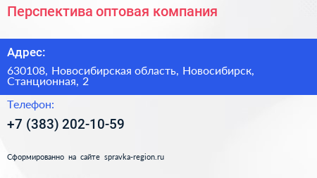 Перспектива, оптовая компания по адресу 630108, Новосибирская область, Новосибирск, Станционная, 2 в дальнейшем Организация, размещена в следующих категориях: