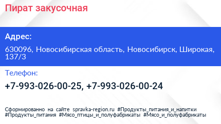 Пират, закусочная по адресу 630096, Новосибирская область, Новосибирск, Широкая, 137/3 в дальнейшем Организация, размещена в следующих категориях: