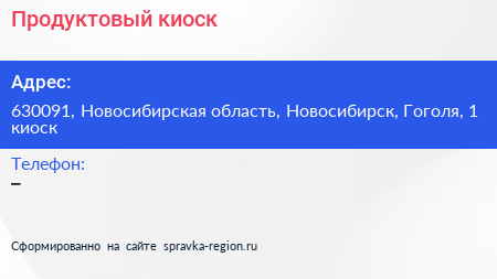 Продуктовый киоск по адресу 630091, Новосибирская область, Новосибирск, Гоголя, 1 киоск в дальнейшем Организация, размещена в следующих категориях:
