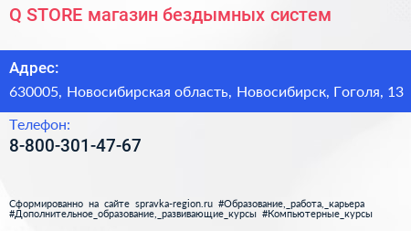 Q STORE, магазин бездымных систем по адресу 630005, Новосибирская область, Новосибирск, Гоголя, 13 в дальнейшем Организация, размещена в следующих категориях:
