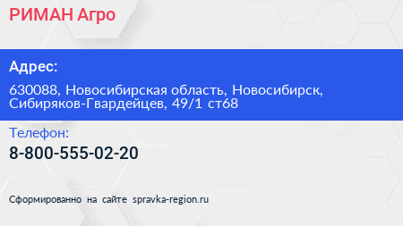 РИМАН-Агро по адресу 630088, Новосибирская область, Новосибирск, Сибиряков-Гвардейцев, 49/1 ст68 в дальнейшем Организация, размещена в следующих категориях: