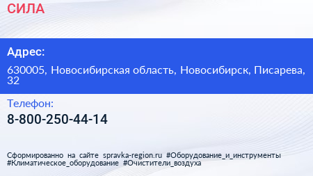 СИЛА по адресу 630005, Новосибирская область, Новосибирск, Писарева, 32 в дальнейшем Организация, размещена в следующих категориях: