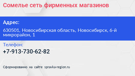 Сомелье, сеть фирменных магазинов по адресу 630501, Новосибирская область, Новосибирск, 6-й микрорайон, 1 в дальнейшем Организация, размещена в следующих категориях:
