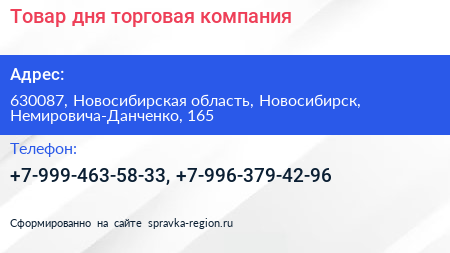 Товар-дня, торговая компания по адресу 630087, Новосибирская область, Новосибирск, Немировича-Данченко, 165 в дальнейшем Организация, размещена в следующих категориях: