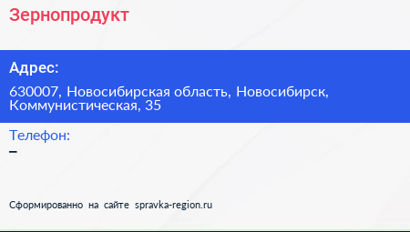 Зернопродукт по адресу 630007, Новосибирская область, Новосибирск, Коммунистическая, 35 в дальнейшем Организация, размещена в следующих категориях: