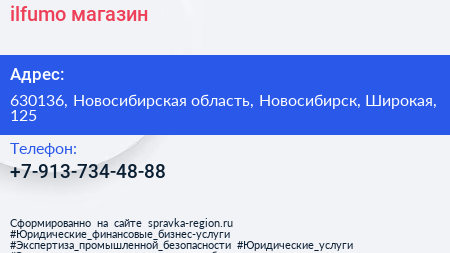 ilfumo, магазин по адресу 630136, Новосибирская область, Новосибирск, Широкая, 125 в дальнейшем Организация, размещена в следующих категориях: