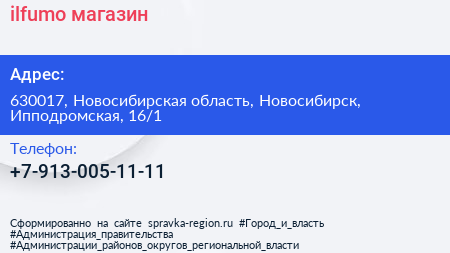 ilfumo, магазин по адресу 630017, Новосибирская область, Новосибирск, Ипподромская, 16/1 в дальнейшем Организация, размещена в следующих категориях: