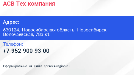 АСВ-Тех, компания по адресу 630124, Новосибирская область, Новосибирск, Волочаевская, 78а к1 в дальнейшем Организация, размещена в следующих категориях: