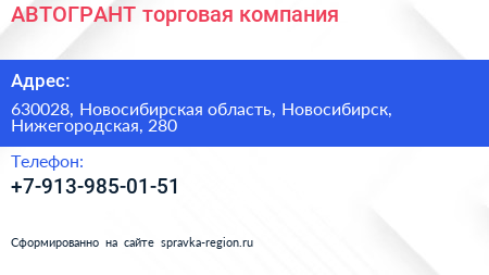 АВТОГРАНТ, торговая компания по адресу 630028, Новосибирская область, Новосибирск, Нижегородская, 280 в дальнейшем Организация, размещена в следующих категориях: