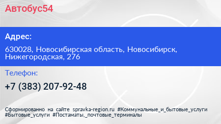 Автобус54 по адресу 630028, Новосибирская область, Новосибирск, Нижегородская, 276 в дальнейшем Организация, размещена в следующих категориях: