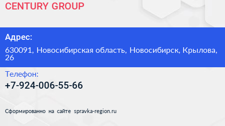 CENTURY GROUP по адресу 630091, Новосибирская область, Новосибирск, Крылова, 26 в дальнейшем Организация, размещена в следующих категориях: