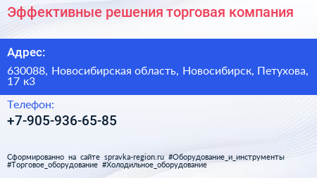 Эффективные решения, торговая компания по адресу 630088, Новосибирская область, Новосибирск, Петухова, 17 к3 в дальнейшем Организация, размещена в следующих категориях:
