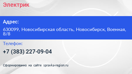 Электрик по адресу 630099, Новосибирская область, Новосибирск, Военная, 8/8 в дальнейшем Организация, размещена в следующих категориях: