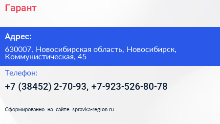 Гарант по адресу 630007, Новосибирская область, Новосибирск, Коммунистическая, 45 в дальнейшем Организация, размещена в следующих категориях: