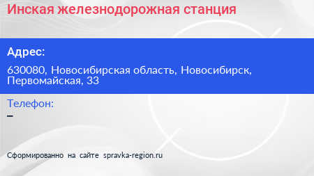 Инская, железнодорожная станция по адресу 630080, Новосибирская область, Новосибирск, Первомайская, 33 в дальнейшем Организация, размещена в следующих категориях: