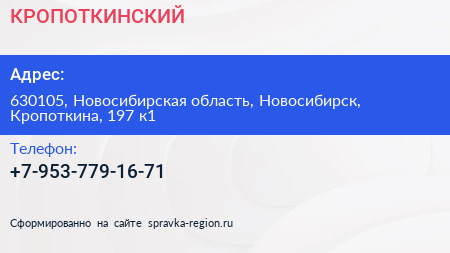 КРОПОТКИНСКИЙ по адресу 630105, Новосибирская область, Новосибирск, Кропоткина, 197 к1 в дальнейшем Организация, размещена в следующих категориях: