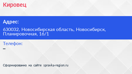 Кировец по адресу 630032, Новосибирская область, Новосибирск, Планировочная, 16/1 в дальнейшем Организация, размещена в следующих категориях: